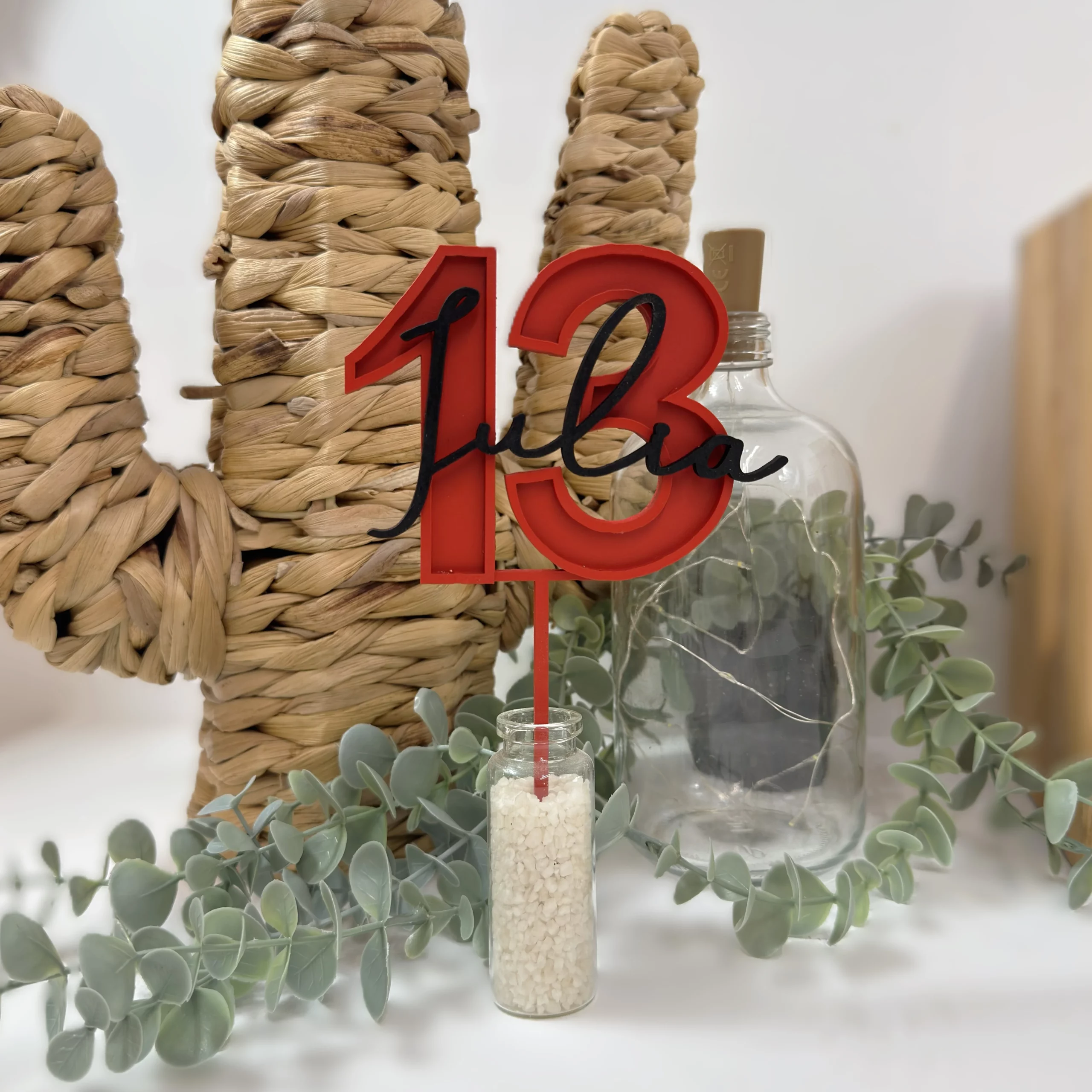 Además, puedes elegir los colores tanto del número como del nombre, adaptándolo completamente a la temática de la fiesta.