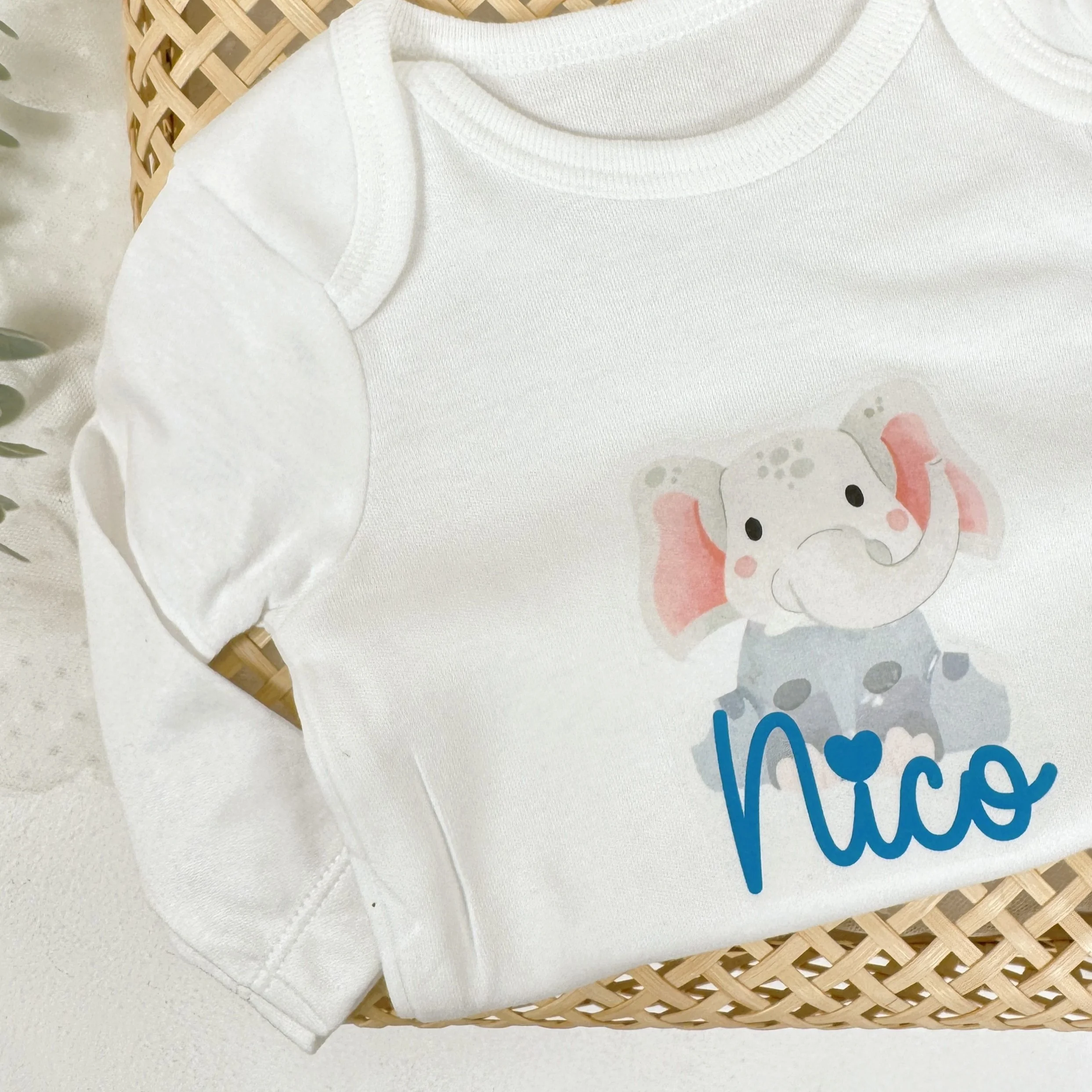 El protagonista del diseño es el animal ilustrado, acompañado del nombre del bebé, impreso con un acabado limpio y duradero. Es un diseño pensado para emocionar sin recargar, ideal tanto para el día a día como para regalar.