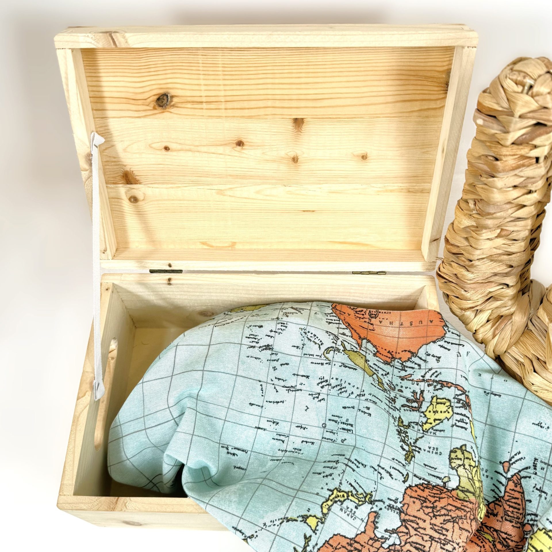 Fabricada en madera de pino, esta caja no solo es resistente, sino también ecológica. Su estética limpia y natural la convierte en un objeto decorativo ideal para el dormitorio, el salón o cualquier rincón especial de la casa.
