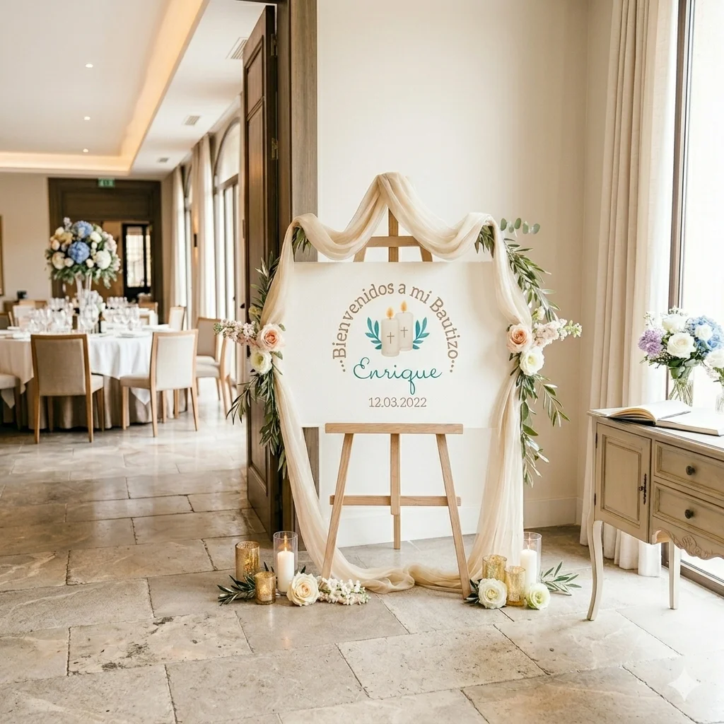 Cartel bienvenida bautizo personalizado 🪧 El primer detalle que marca la diferencia