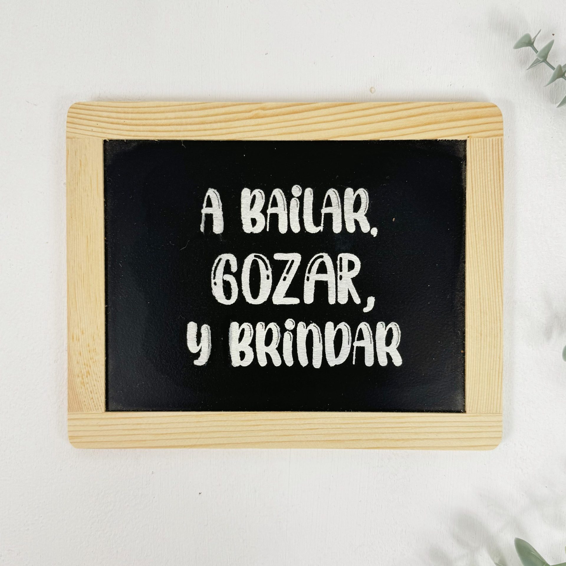 Cartel Pizarra Decoración Bodas – A Bailar, a Gozar y a Brindar