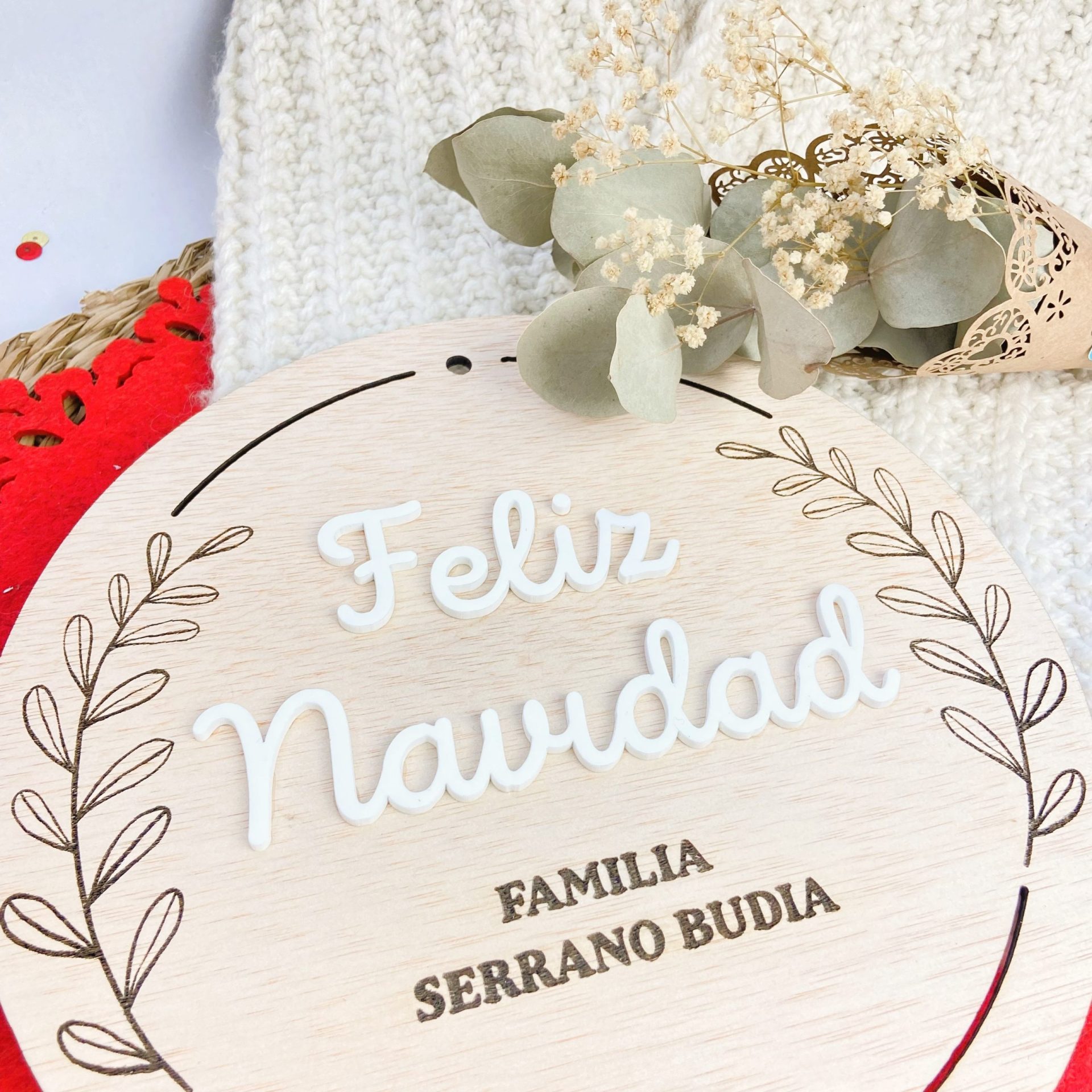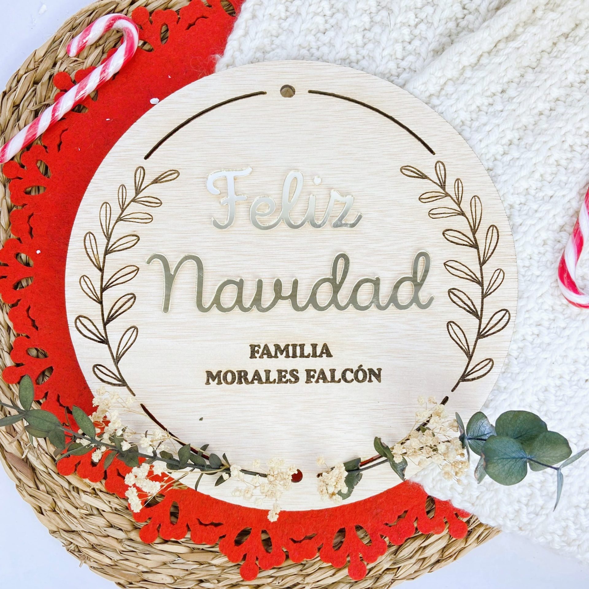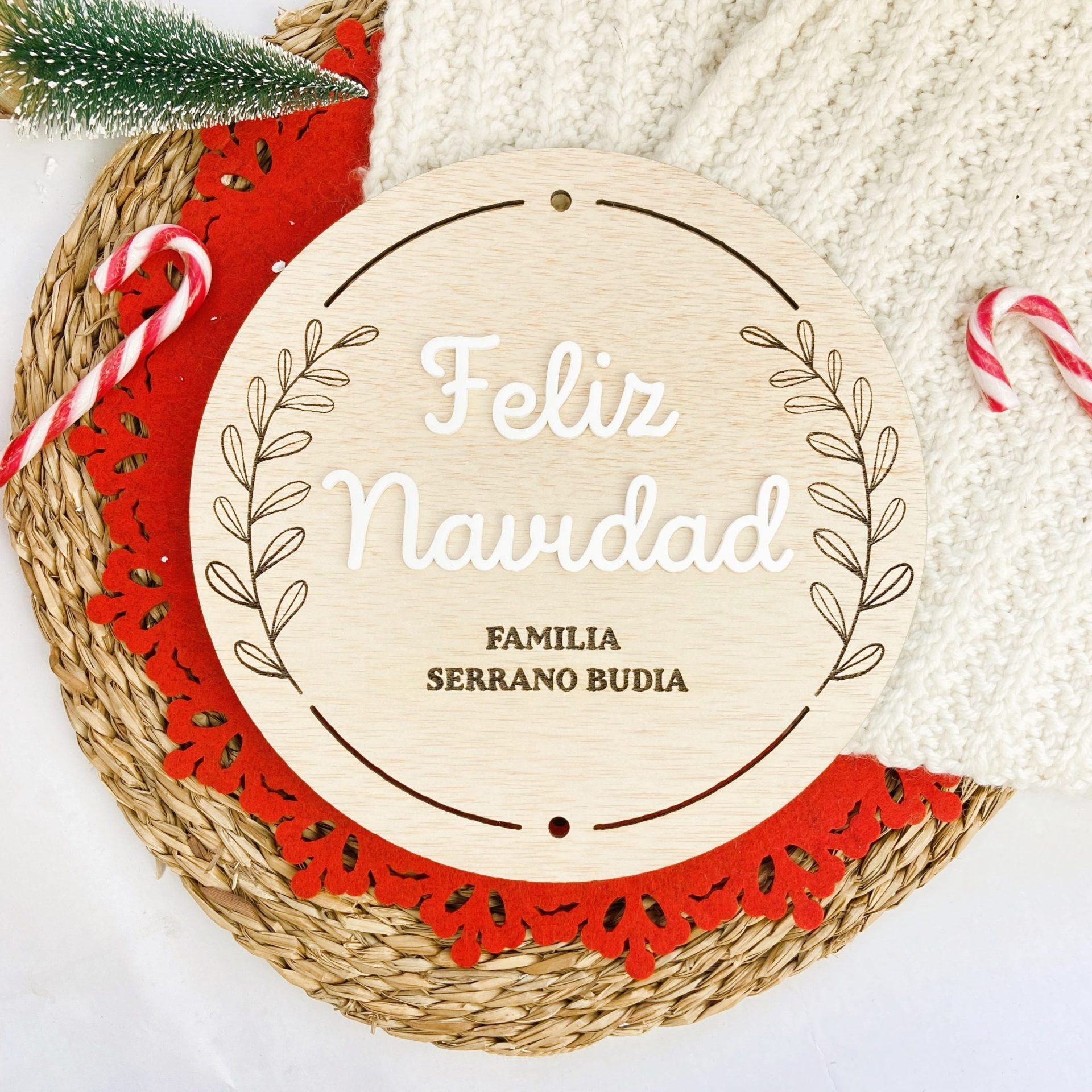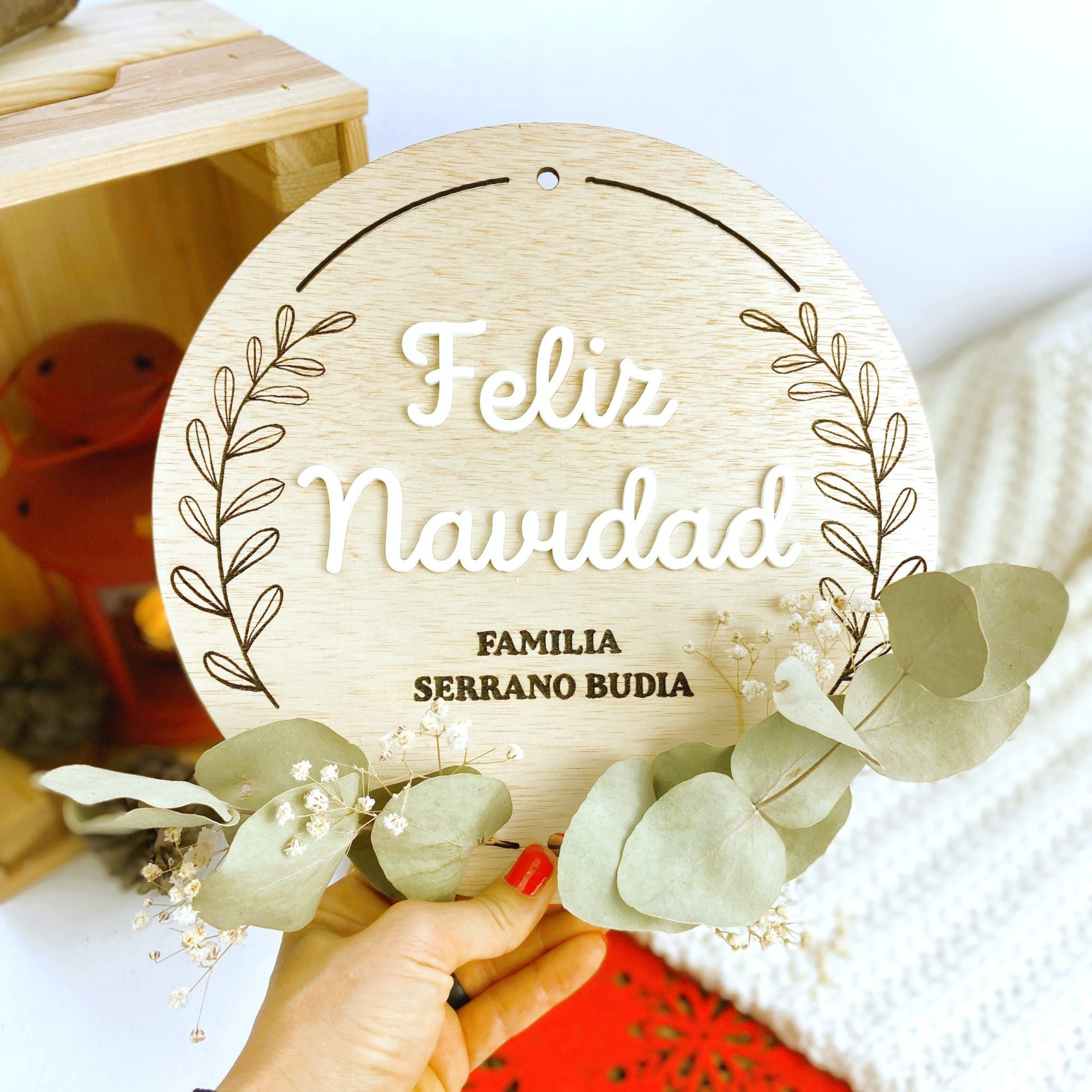 Más allá de ser un simple adorno, esta Corona Navidad se convierte en una preciosa placa de bienvenida, diseñada para felicitar las fiestas a todo el mundo en nombre de tu familia. Es completamente única, una forma inolvidable de sorprender a todos tus seres queridos y visitantes estas Navidades. Imagina la calidez que desprenderá tu puerta con este distintivo personalizado, haciendo sentir a cada persona la magia y el espíritu familiar desde el primer momento.