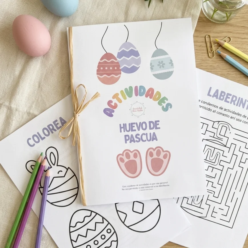 Si estás buscando una forma bonita, sencilla y divertida de entretener a los peques esta Semana Santa, este cuaderno de actividades de Pascua imprimible es justo lo que necesitas.