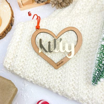 Por un lado tenéis nuestras famosas BOLAS DE NAVIDAD PERSONALIZADAS, ¡vuestras favoritas!, tanto en madera como en su versión “más DELUXE” este año, en metacrilato, con bien de brilli brilli.