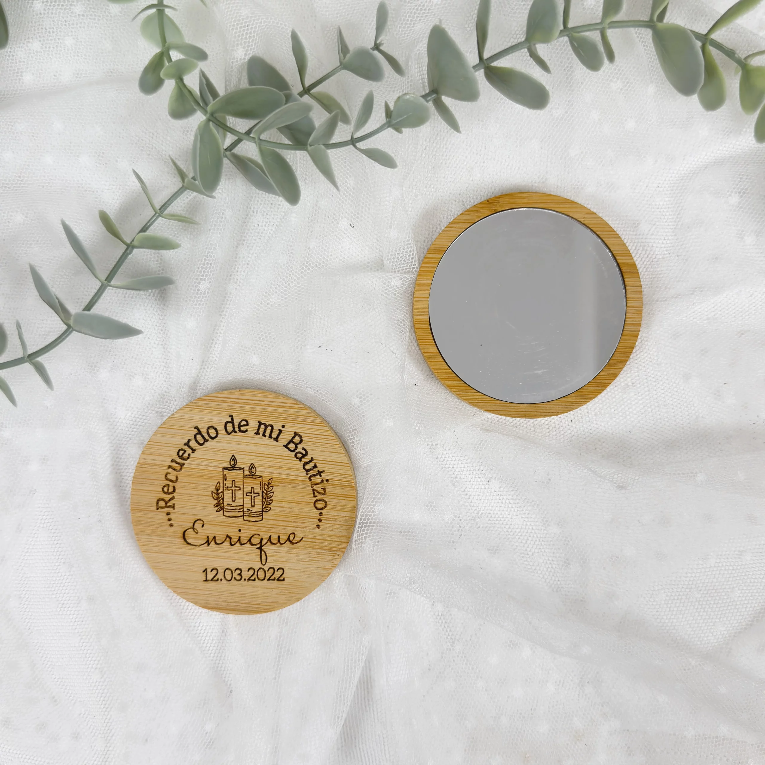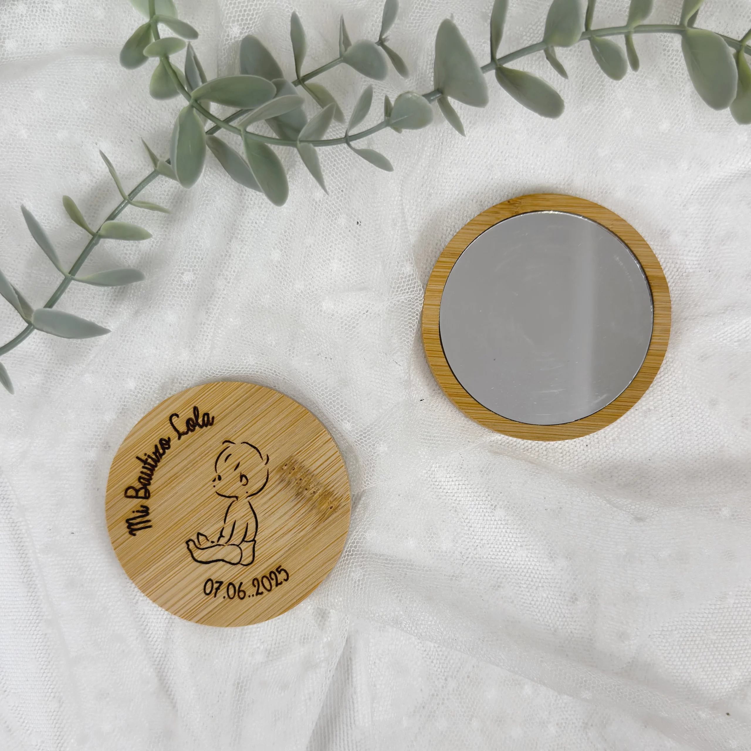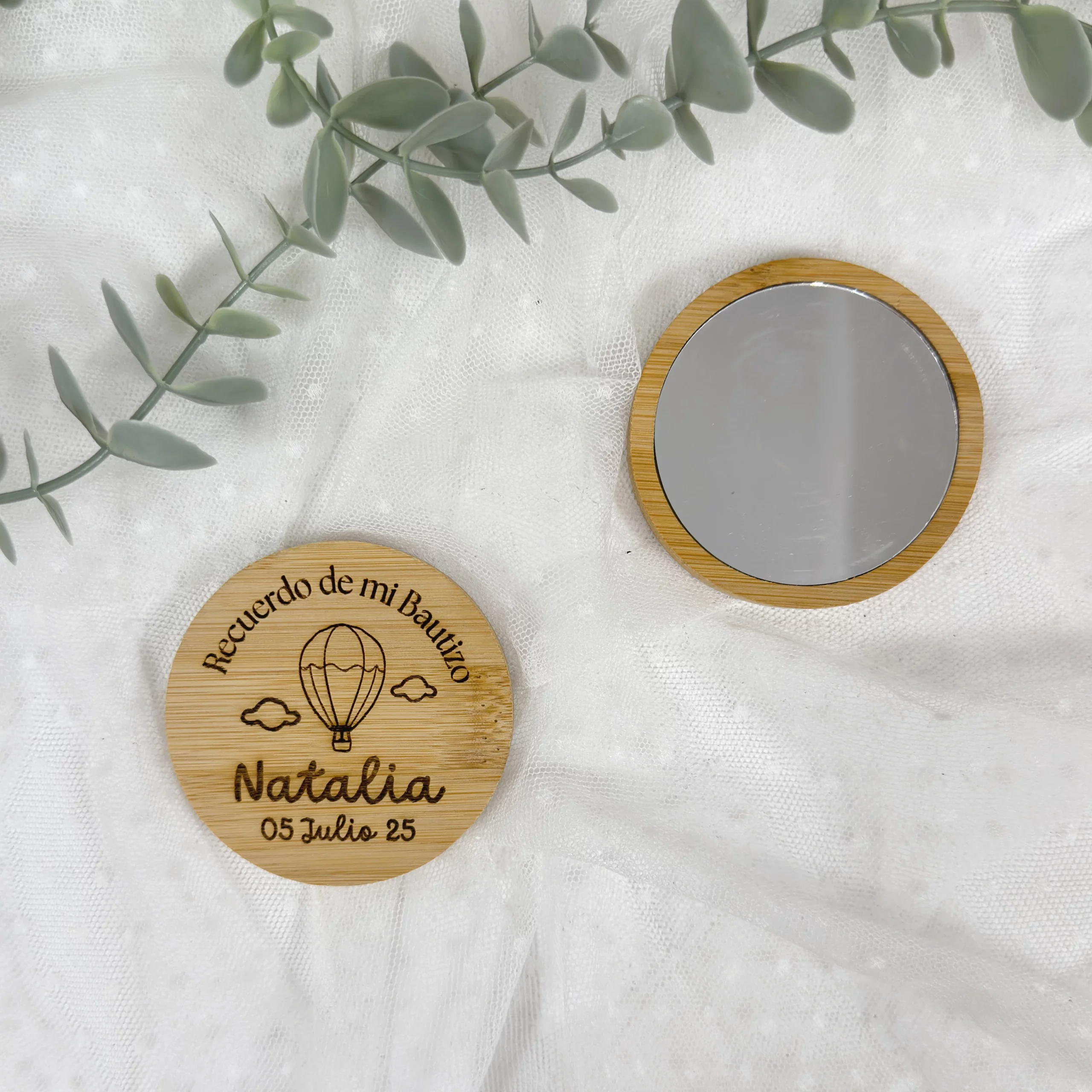 Si estás buscando un detalle de bautizo original, bonito y con ese toque artesanal que enamora a primera vista, nuestros Espejo Bautizo Personalizado de madera grabado son una opción perfecta. Diseñados y fabricados en nuestro taller con mucho mimo, estos espejitos de bambú son un recuerdo único para regalar a tus invitados y hacer que se lleven a casa algo especial del día de tu peque.