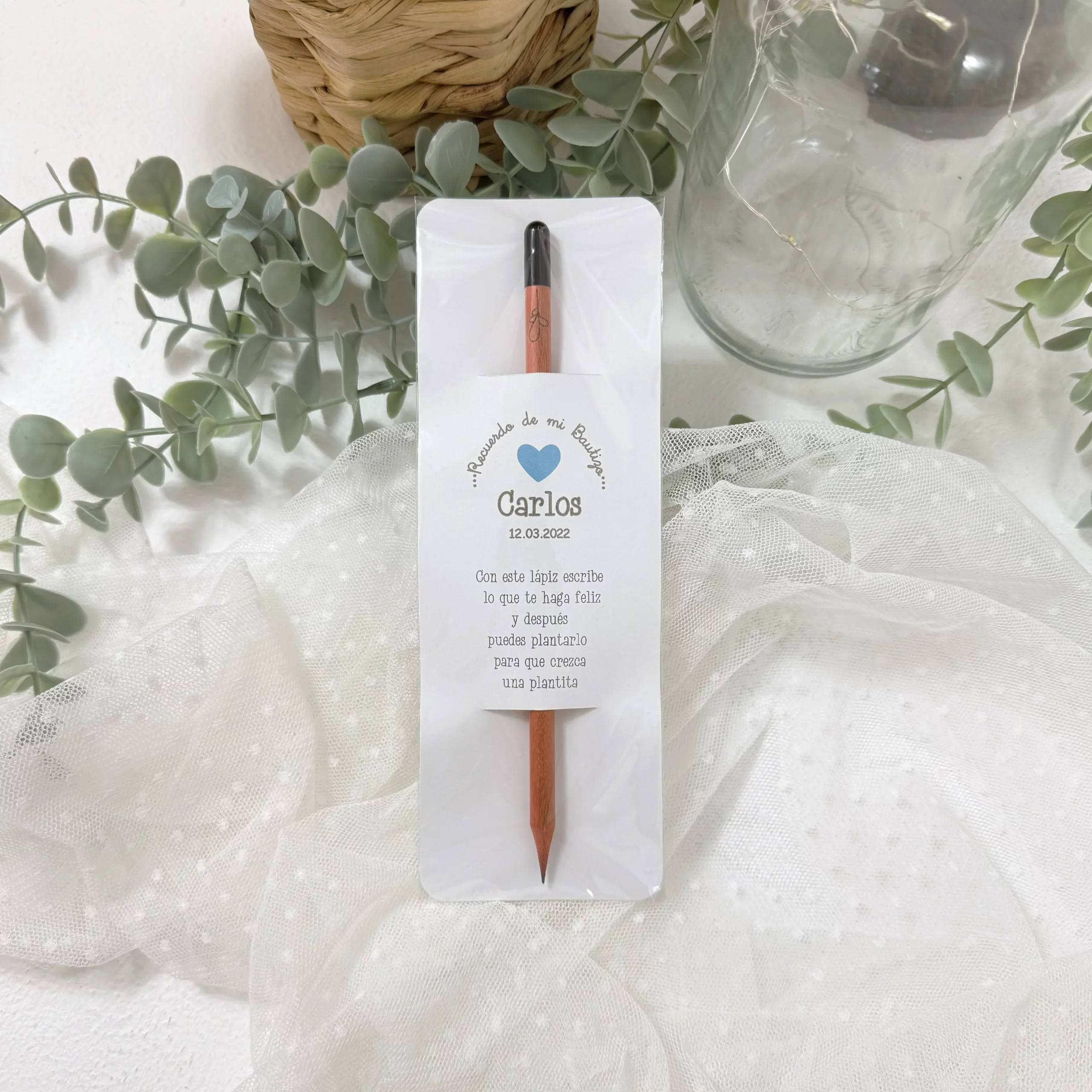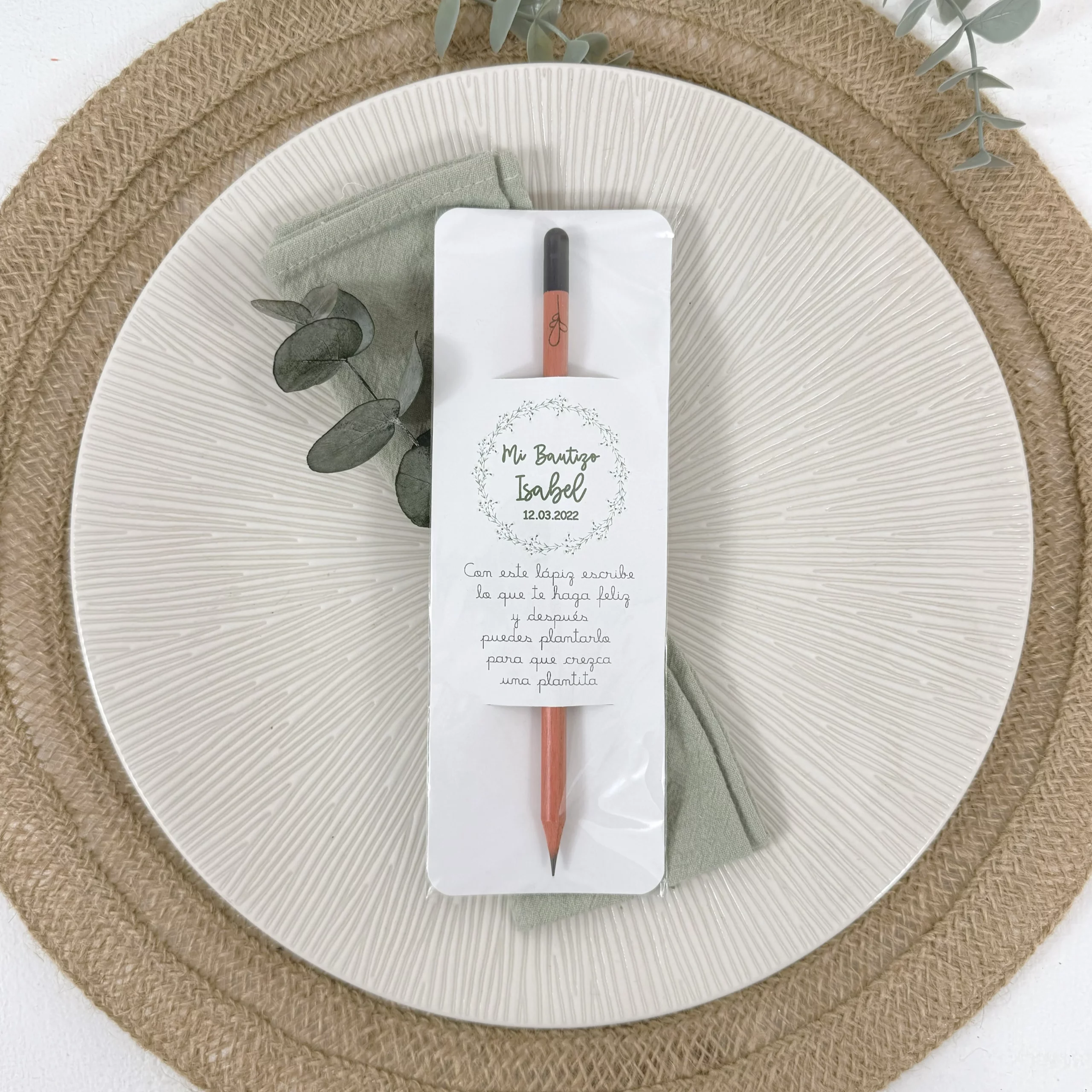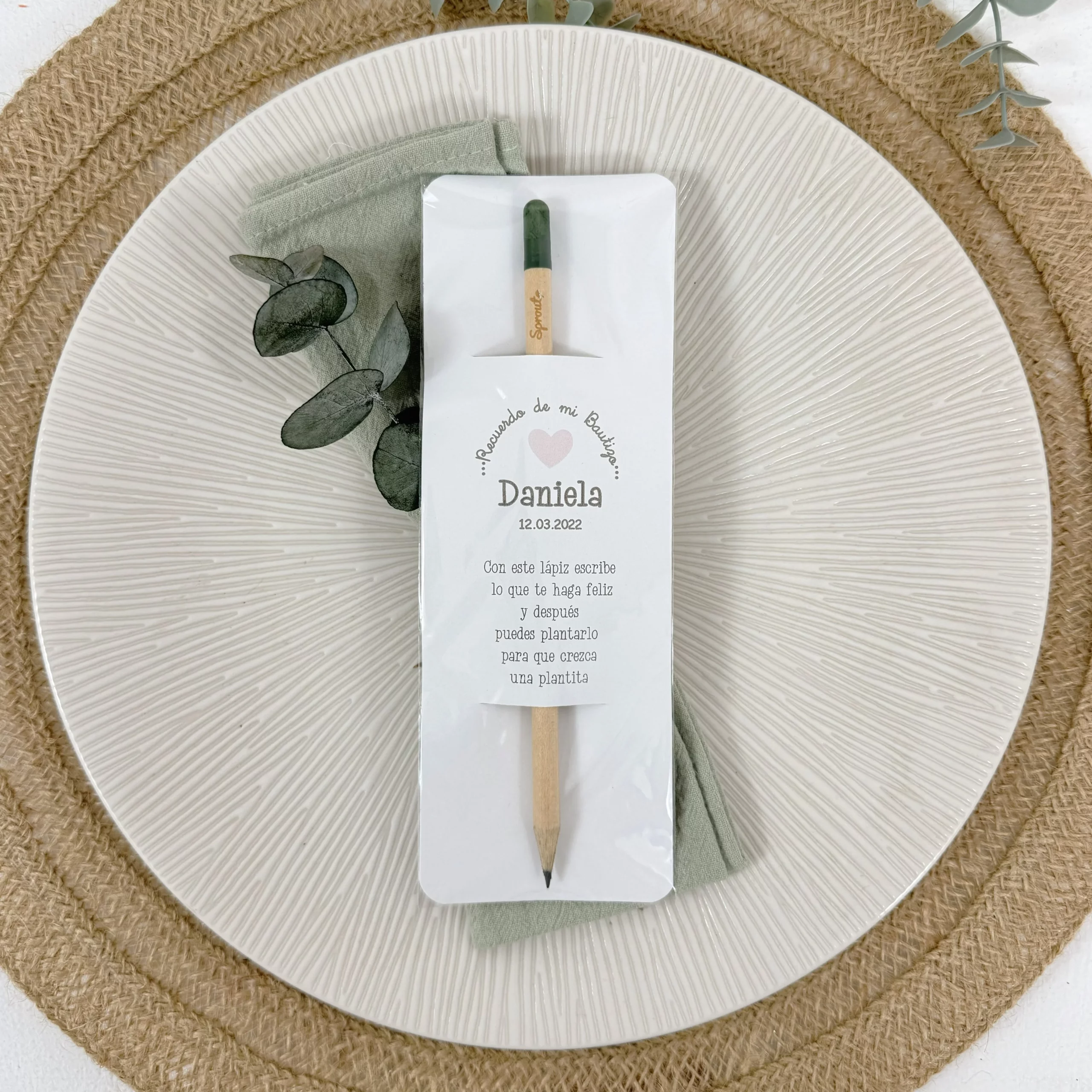 Este lápiz no es solo un recuerdo del bautizo. Es un objeto que se utiliza, se guarda y, cuando llega el momento, se planta para dar vida a una planta. Un gesto pequeño, pero cargado de significado, que encanta tanto a adultos como a niños.