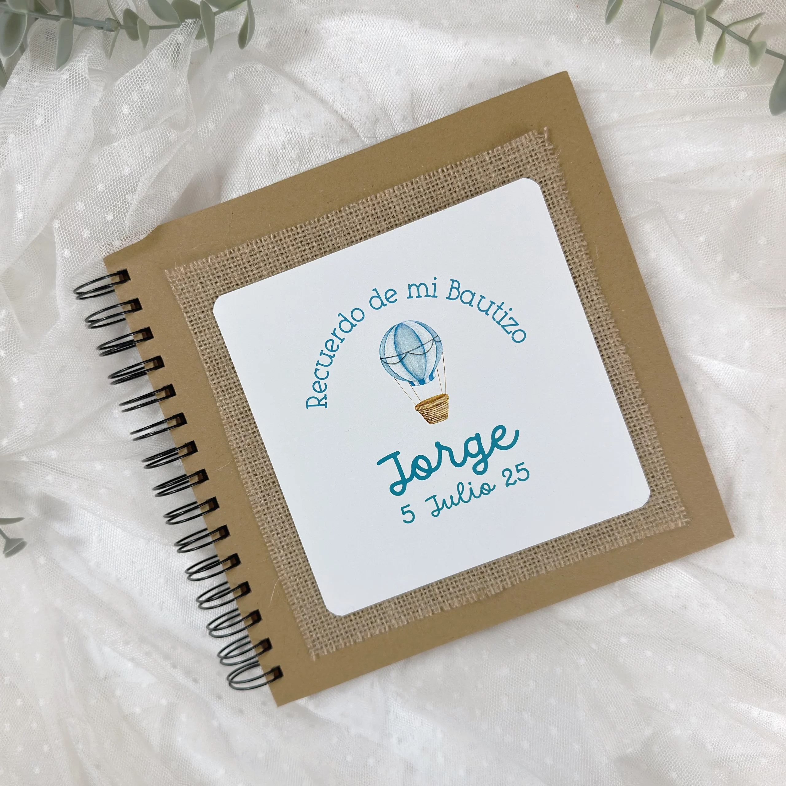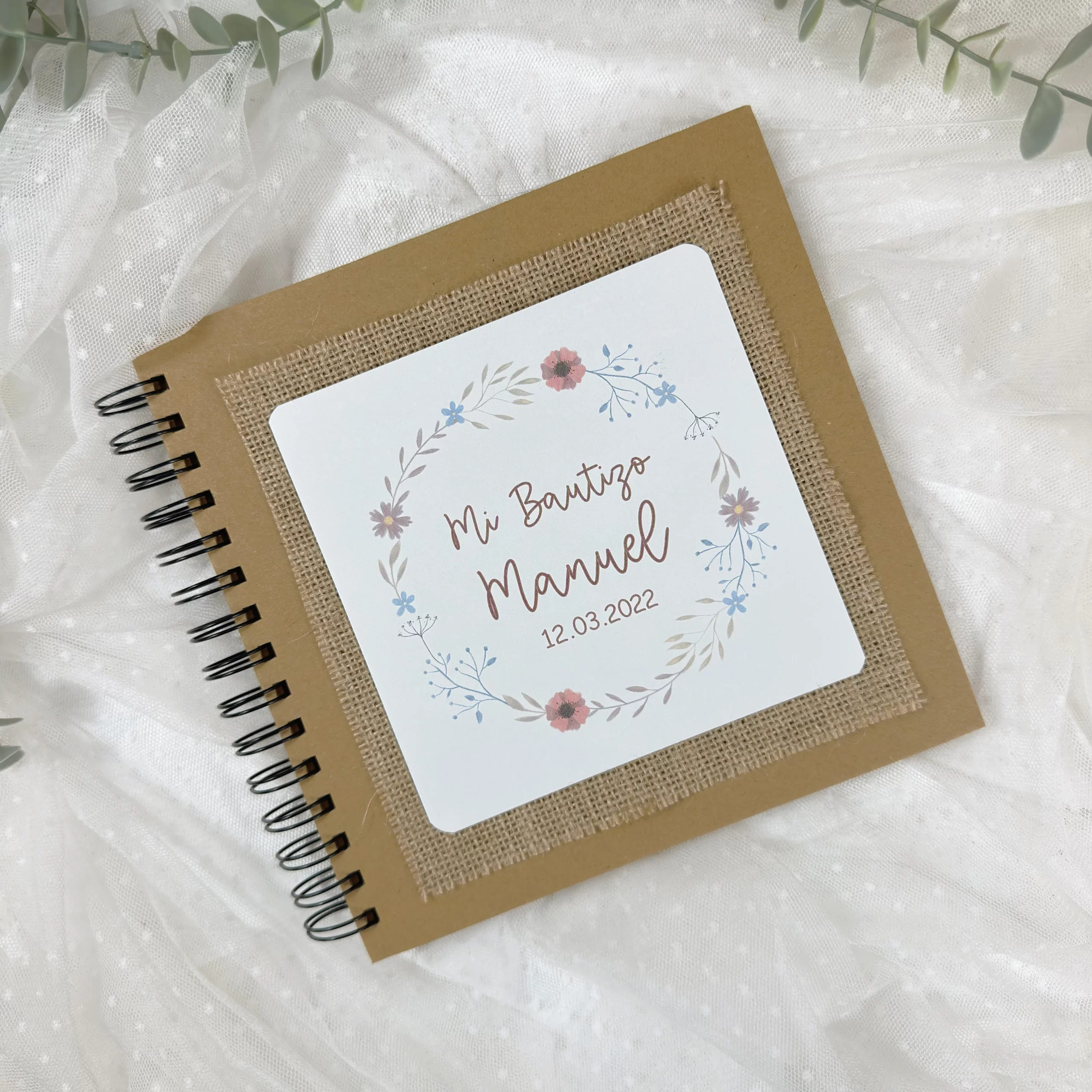 Este libro de firmas bautizo personalizado está pensado para que quede precioso en la mesa (sin desentonar, sin “manualidad cutre”) y para que luego, en casa, se convierta en ese álbum que abrís con una sonrisa cada vez que lo encontráis. Lo especial de este modelo es que lo hacemos con nuestros diseños de bautizo a color, para que puedas elegir el estilo que encaje con vuestra temática: flores, corazón, osito, barquito, globo, velas, cruz… y también opción “tu logo” si lo necesitas para un evento o marca.