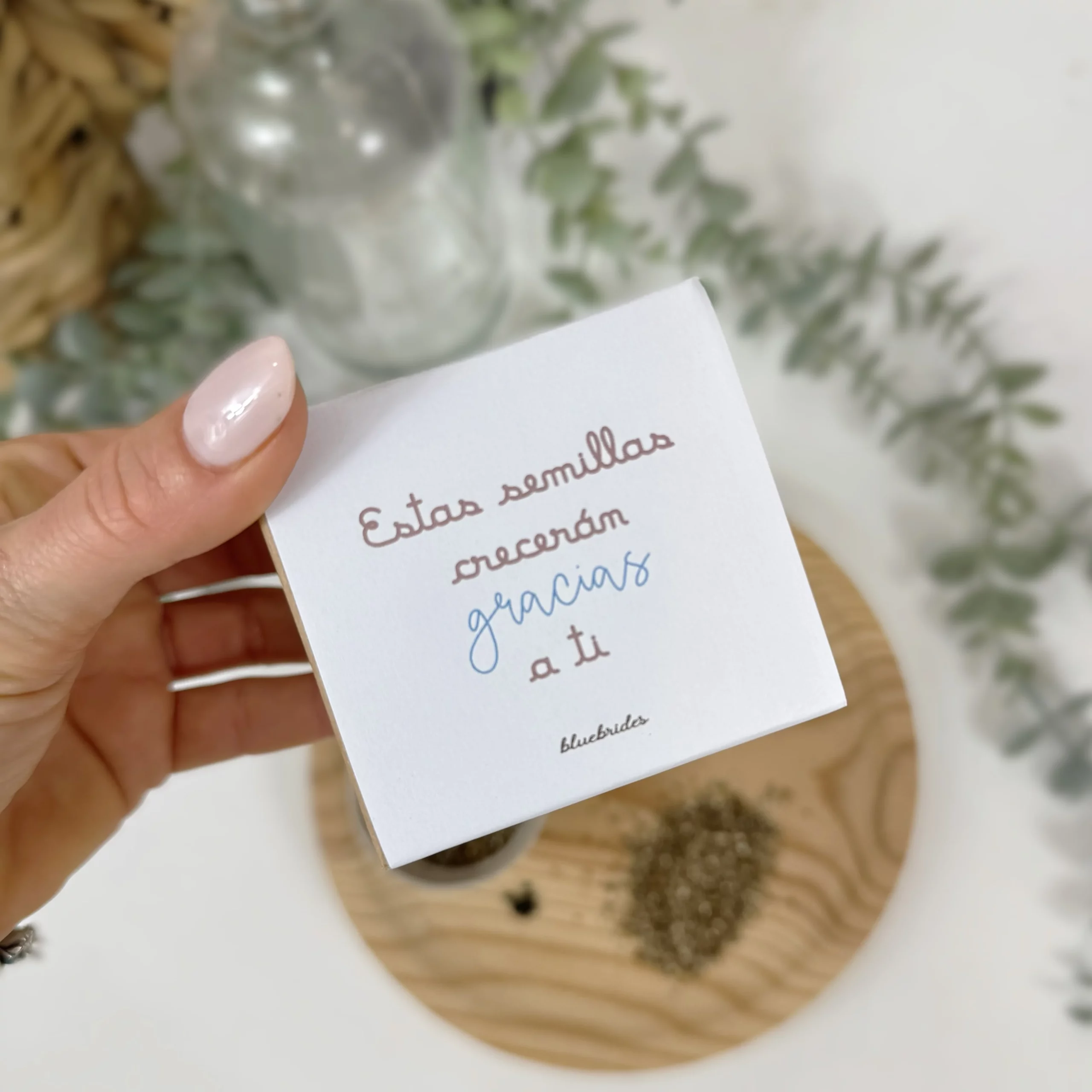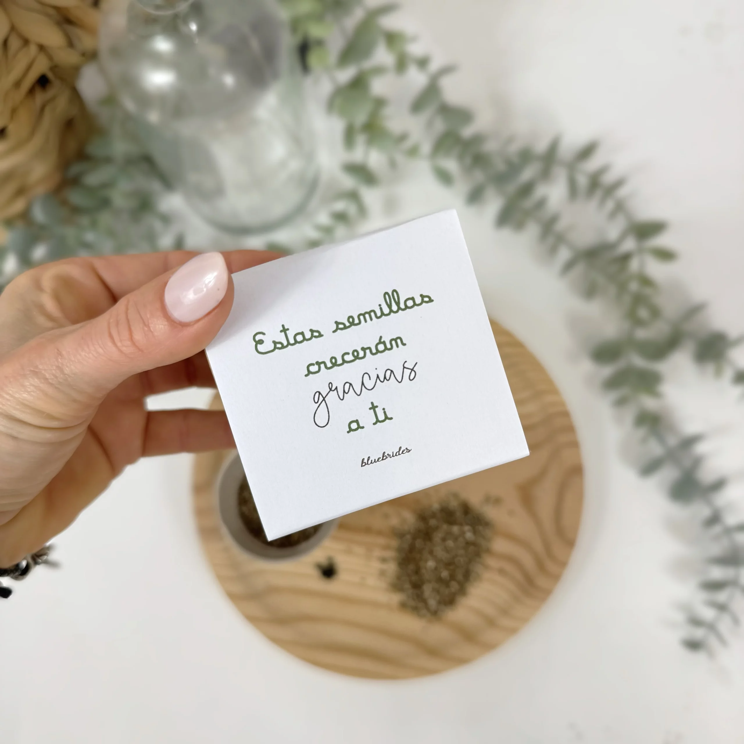 Es un detalle delicado, sostenible y emocional. No se queda olvidado. Se planta. Se riega. Crece. Y cada vez que alguien vea esa pequeña planta, recordará el día especial que compartió con vosotros.