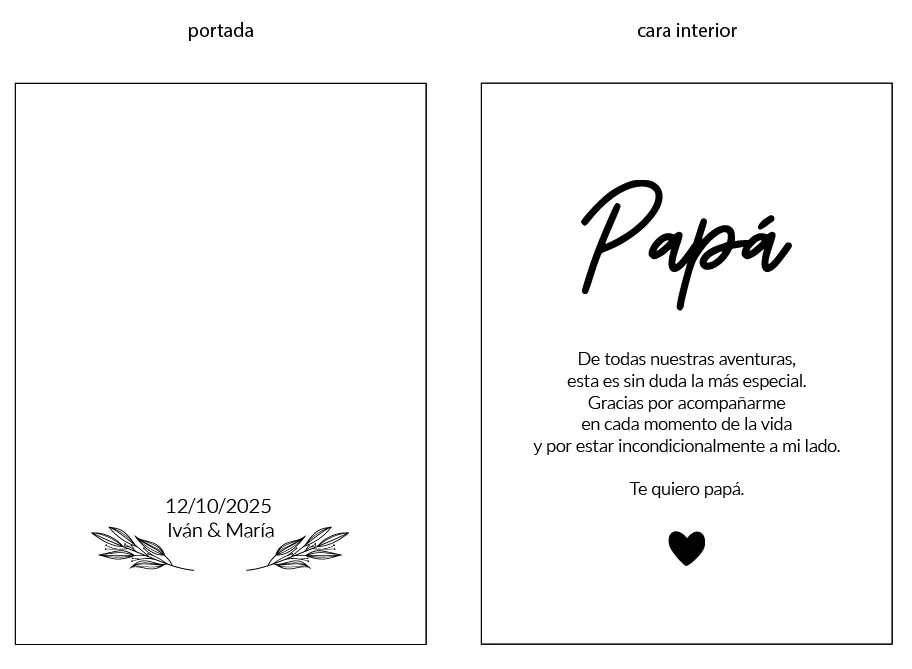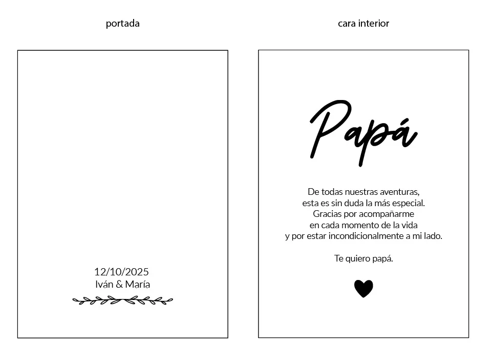 - Grabado láser en la portada y/o en el interior con nombres, fechas o mensajes.