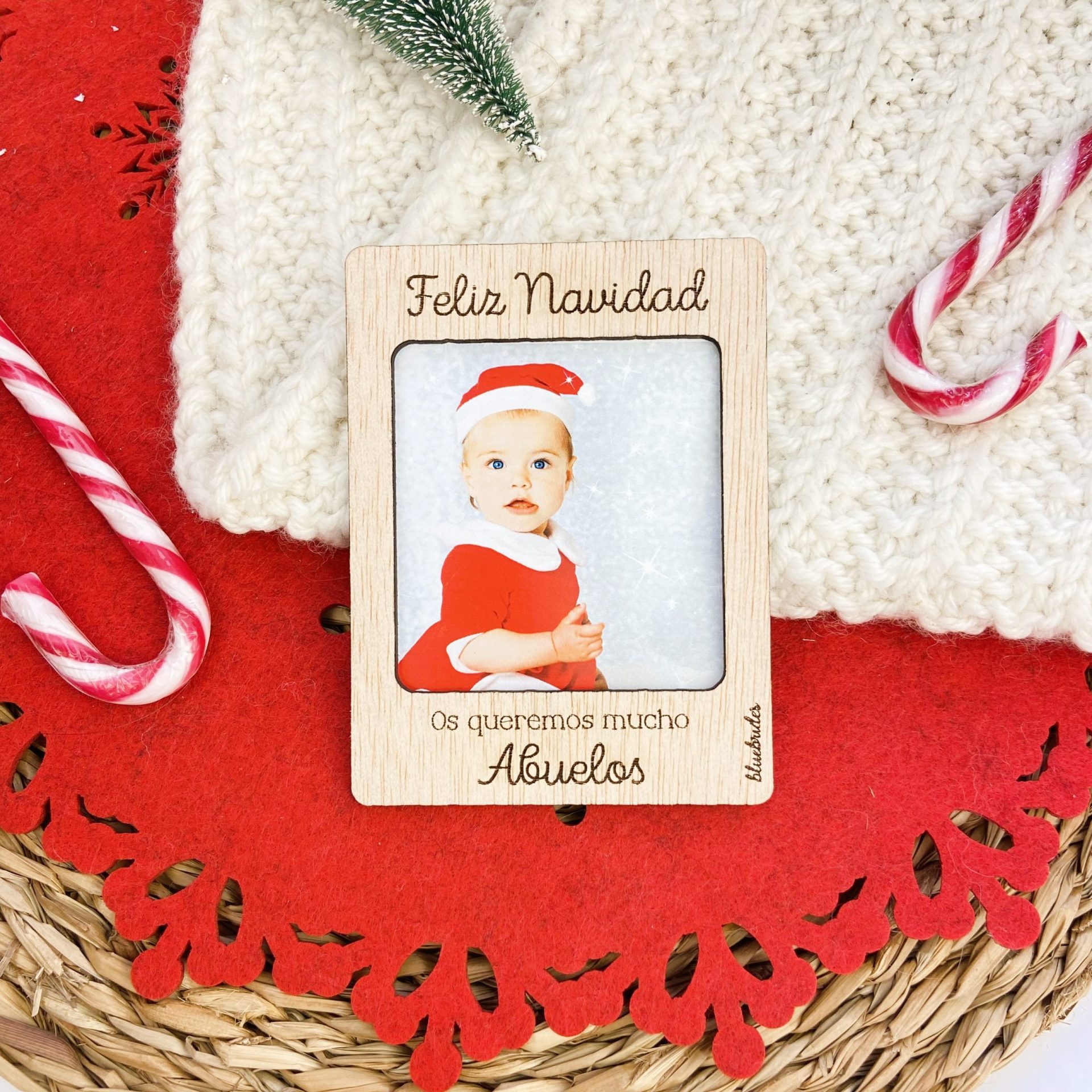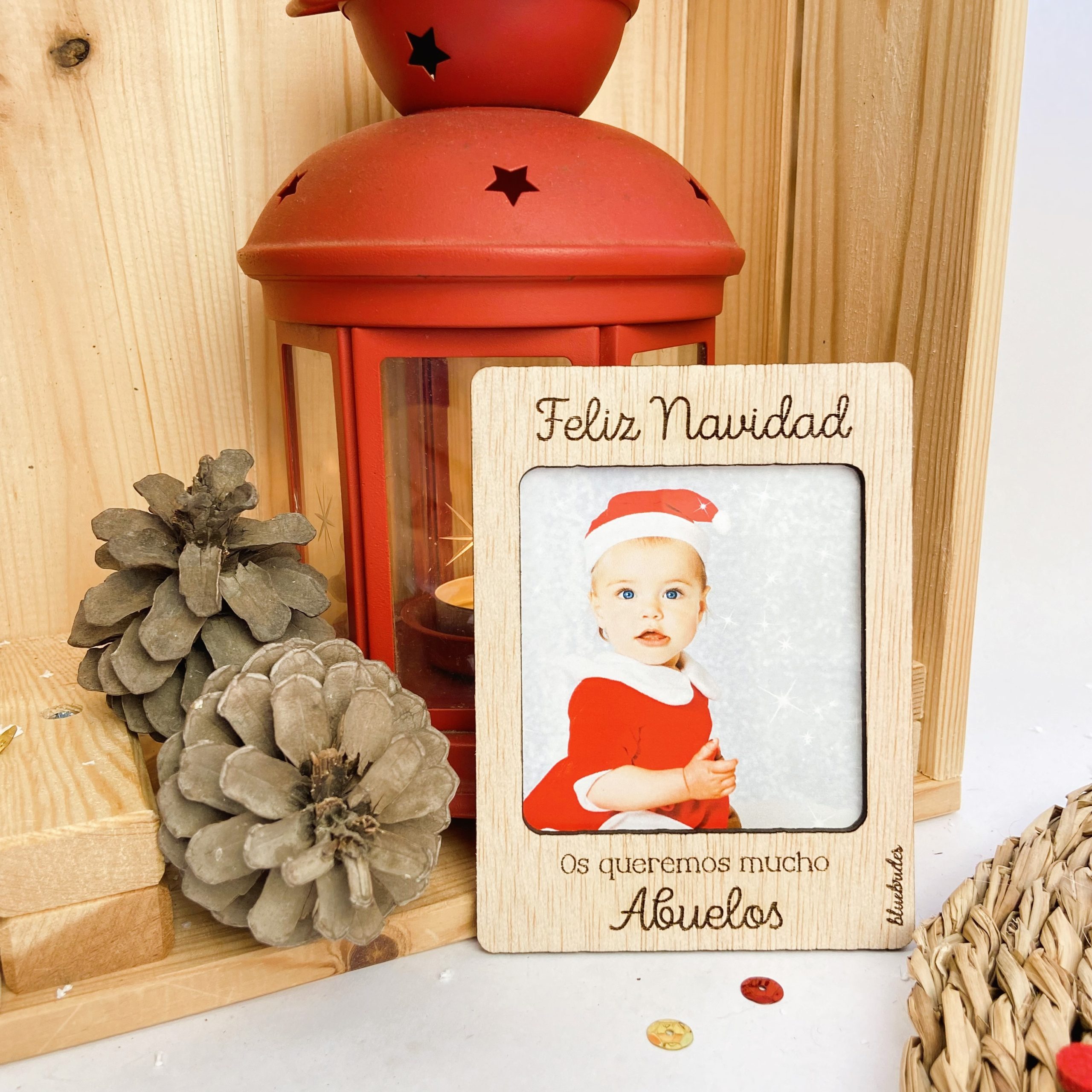 Nuestros marcos son totalmente personalizables, con tres líneas de texto grabadas, en el de arriba, en estas fechas, recomendamos poner “Feliz Navidad”, pero podéis modificarla. En las otras dos, podréis poner vuestros nombres, frase, fecha especial, …, ¡vosotros decidís!