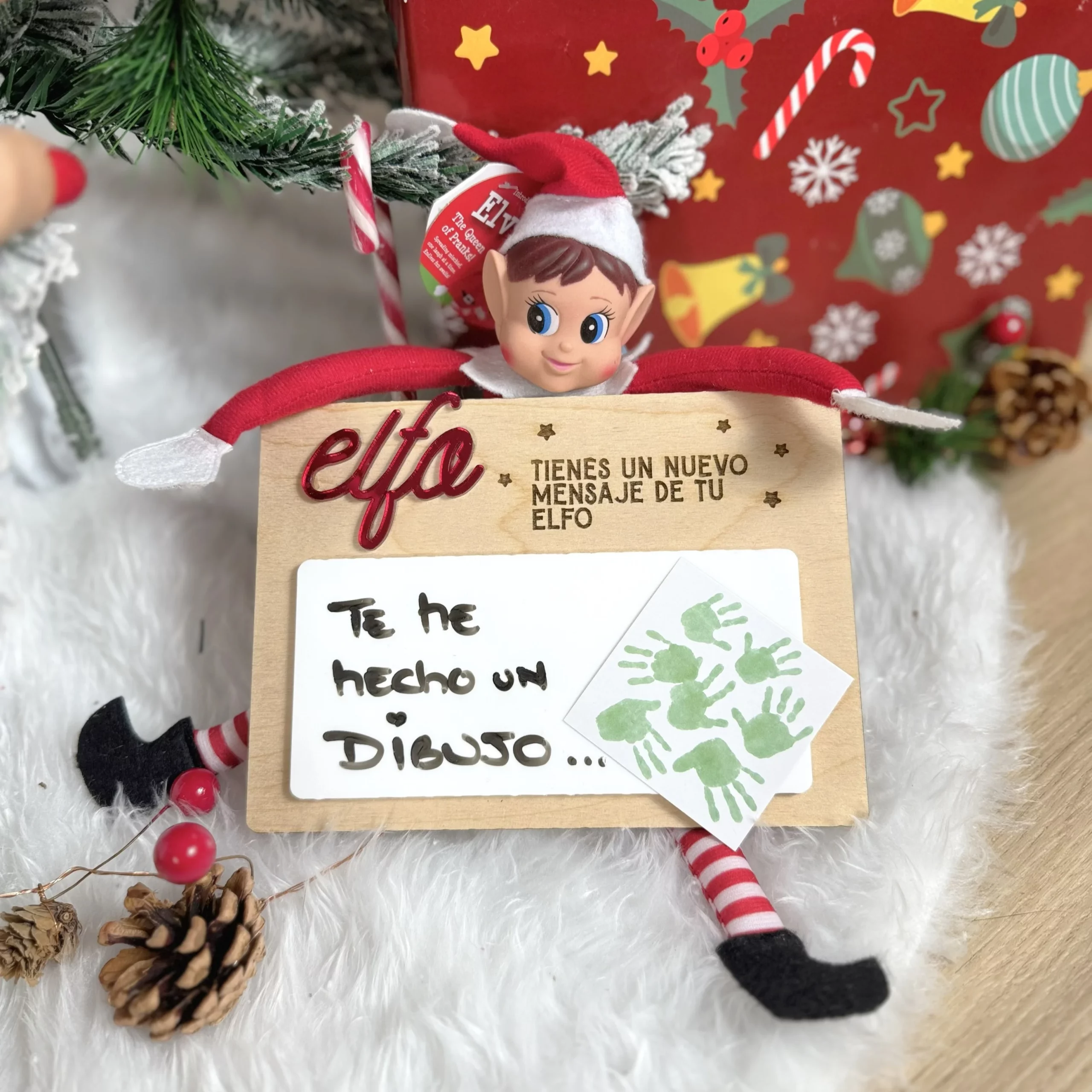 La llegada del elfo es uno de los momentos más esperados por los peques… y también por los mayores. Ese “¿qué habrá hecho hoy?” se convierte en una tradición llena de risas y de ilusión. Esta Pizarra Mensajes Elfo Navidad está creada para hacer aún más especial ese juego diario: un rincón mágico donde el elfo puede dejar notas, pistas, mensajes cariñosos o travesuras divertidas.