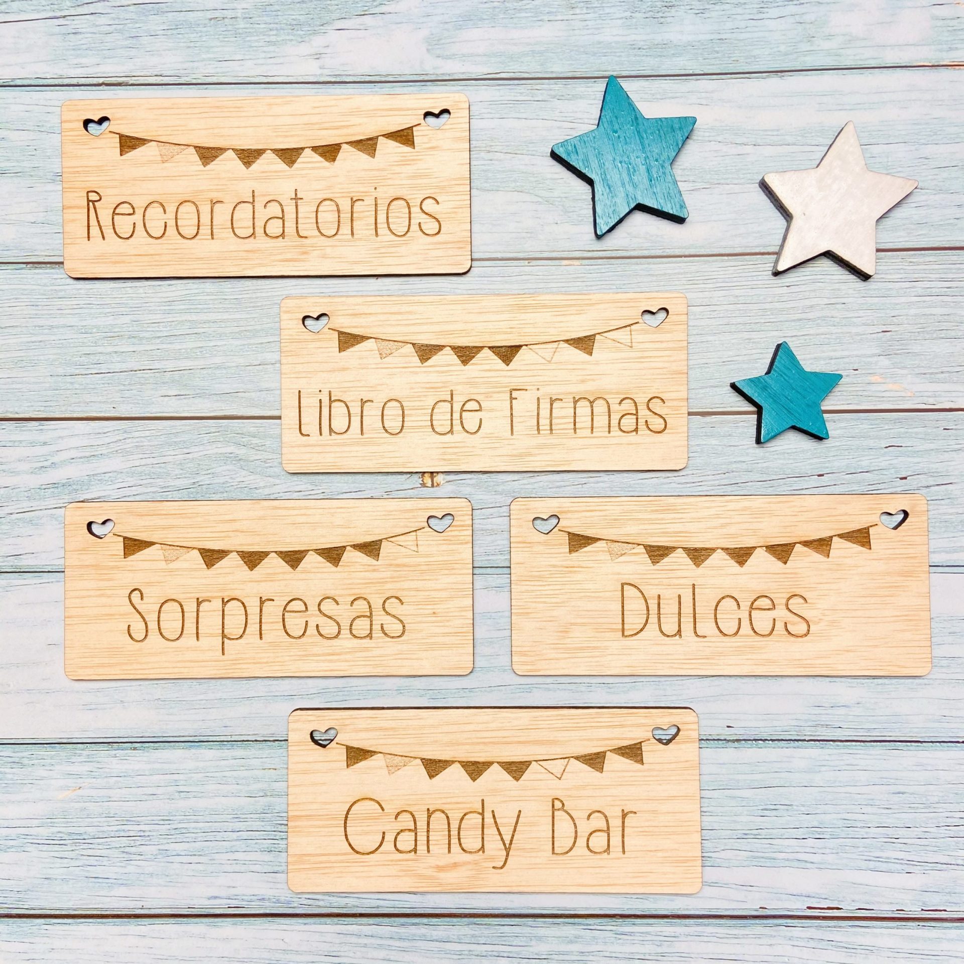 Set 5 carteles de madera banderines