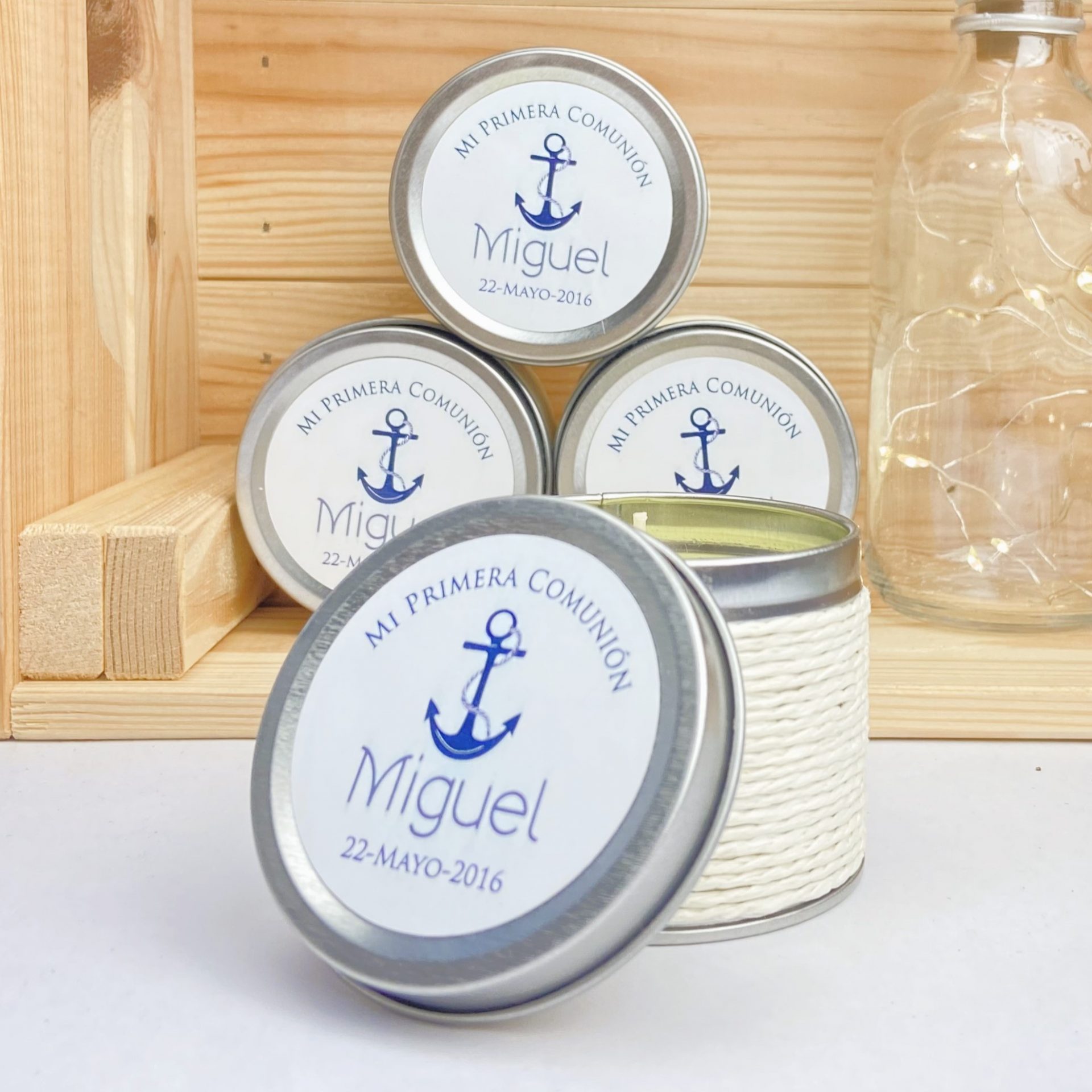 ¿Buscáis un detalle único para los invitados de la comunión de vuestr@ peque? Nuestras velas metálicas con pegatina personalizadas son una forma súper original de regalar. El regalo perfecto para sorprender a vuestros invitados.